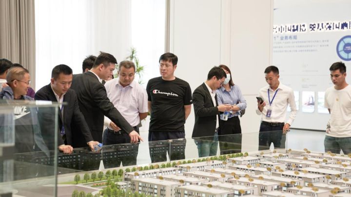 隨后,各位嘉賓及到場企業(yè)家一起參觀了招商中心及現(xiàn)場工地。項目于2021年6月3日舉辦奠基儀式正式開工,至今3個多月時間,項目已實現(xiàn)一流水全部封頂,二流水主體施工陸續(xù)封頂。各位嘉賓及企業(yè)家對項目“快建設(shè)”的承諾表示肯定,對建設(shè)質(zhì)量及施工管理規(guī)范表示贊許。