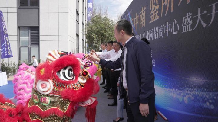 在招商中心開放之際,祥瑞的金獅也來到現(xiàn)場祝福。在鑼鼓喧天的喜慶氛圍中,昆明國家高新區(qū)管委會張洋、中南高科渝滇戰(zhàn)區(qū)招商負責人梁國棟及中國銀行、興業(yè)銀行及各商協(xié)會代表等領(lǐng)導(dǎo)一起為金獅點睛。祥瑞的金獅在熱鬧的鑼鼓聲中,為中南高科昆明智匯產(chǎn)業(yè)園招商中心帶來美好祝愿。